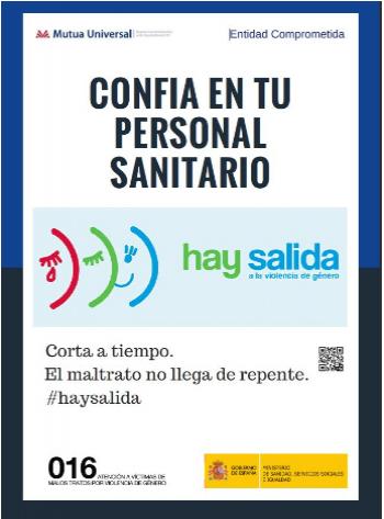 En Mutua Universal somos conscientes de la problemática social existente y de la necesaria implicación de todos los agentes sociales en la prevención de la violencia de género. Es por este motivo que, junto a 26 empresas más, nos adherimos en el 2015 a la red "Empresas por una Sociedad Libre de Violencia de Género", que desarrolla el Ministerio de Sanidad, Servicios Sociales e Igualdad.Con motivo del día internacional contra la violencia de género que se conmemora cada 25 de noviembre, entre otras acciones de información y sensibilización a sus empleados, Mutua Universal distribuyó en todos sus centros asistenciales un póster en el que se indica que nuestro personal sanitario puede ayudar en cualquier momento y si es necesario a posibles víctimas de violencia machista.