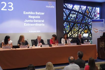 En la Junta General Extraordinaria, celebrada el mismo día, Urtsa Errazti, presidente de Mutualia, ha agradecido en su intervención el esfuerzo realizado por su Junta Directiva para establecer un sistema avanzado de gobernanza, recordando que todo el sistema es coherente con el propósito de Mutualia, que es el de garantizar el derecho a la salud, seguridad y bienestar de las personas, en colaboración con la Seguridad Social. Por su parte, Ignacio Lekunberri, director gerente de Mutualia, ha destacado el incremento del número de días de baja por trabajador en Euskadi, lo que en su opinión “merece una reflexión serena pero urgente de todos los agentes implicados”. En este sentido, ha anunciado que ya se están dando pasos para solucionar este problema y se ha mostrado esperanzado con la obtención de resultados, al menos, a medio plazo.
