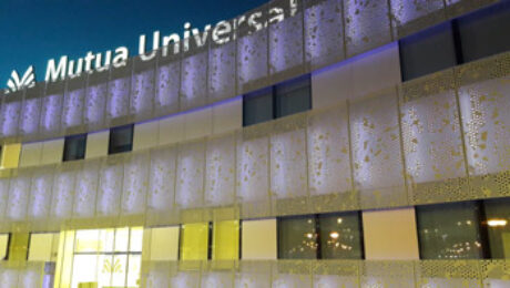 Fuente: La fachada del centro asistencial de Logrono se ilumina de color violeta el dia 25 de noviembre con motivo del dia contra la violencia de genero. Mutua Universal forma parte de la red Empresas por una Sociedad Libre de Violencia de Genero., que impulsa el Ministerio de Sanidad, Servicios Sociales e Igualdad Mutua Universal,