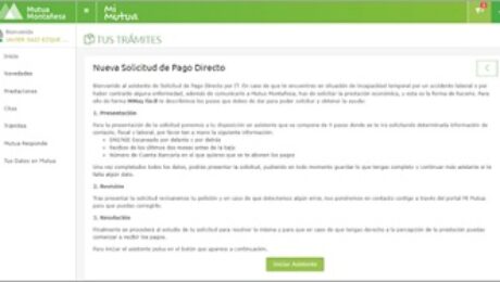 Mutua Montañesa ha puesto en funcionamiento, a través de su portal MiMutua para trabajadores, un nuevo servicio que permite a los autónomos solicitar el pago directo de prestaciones en caso de baja laboral de manera completamente online. Esta funcionalidad se une al amplio catálogo de servicios online del organismo, con el objetivo de ofrecer el