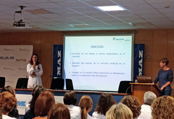 Establecer una dieta sana, equilibrada y adaptada a la patologia del paciente es el objetivo de la presentacion de las nuevas guias de Nutricion y Dietetica Clinica que tuvo lugar el pasado viernes 23 de octubre de 2015, en el Hospital MAZ de Zaragoza, por parte de la intensivista Raquel Valero y Maria Sese, DUE ambas de este Hospital.