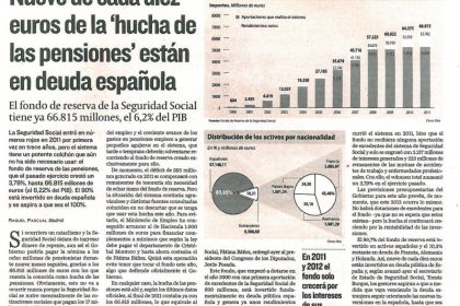 • Nueve de cada diez euros de la -hucha de las pensiones-estan en deuda espanola.