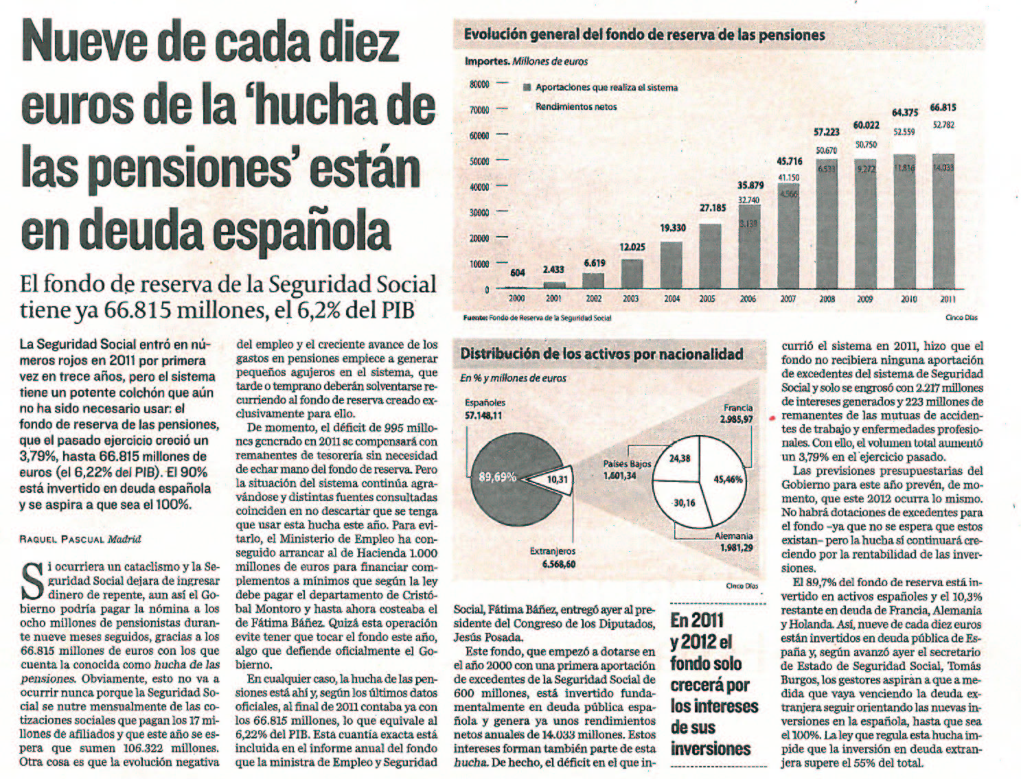 Nueve de cada diez euros de la -hucha de las pensiones-estan en deuda espanola.
