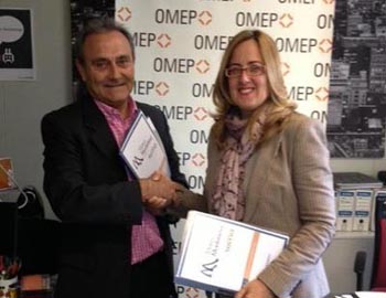 La presidenta de la Organizacion Murciana de Empresarias y Profesionales, Manuela Marin, y el director gerente de Mutua Montanesa, Rafael Fonseca Galan han suscrito un convenio de colaboracion en beneficio de sus asociadas.