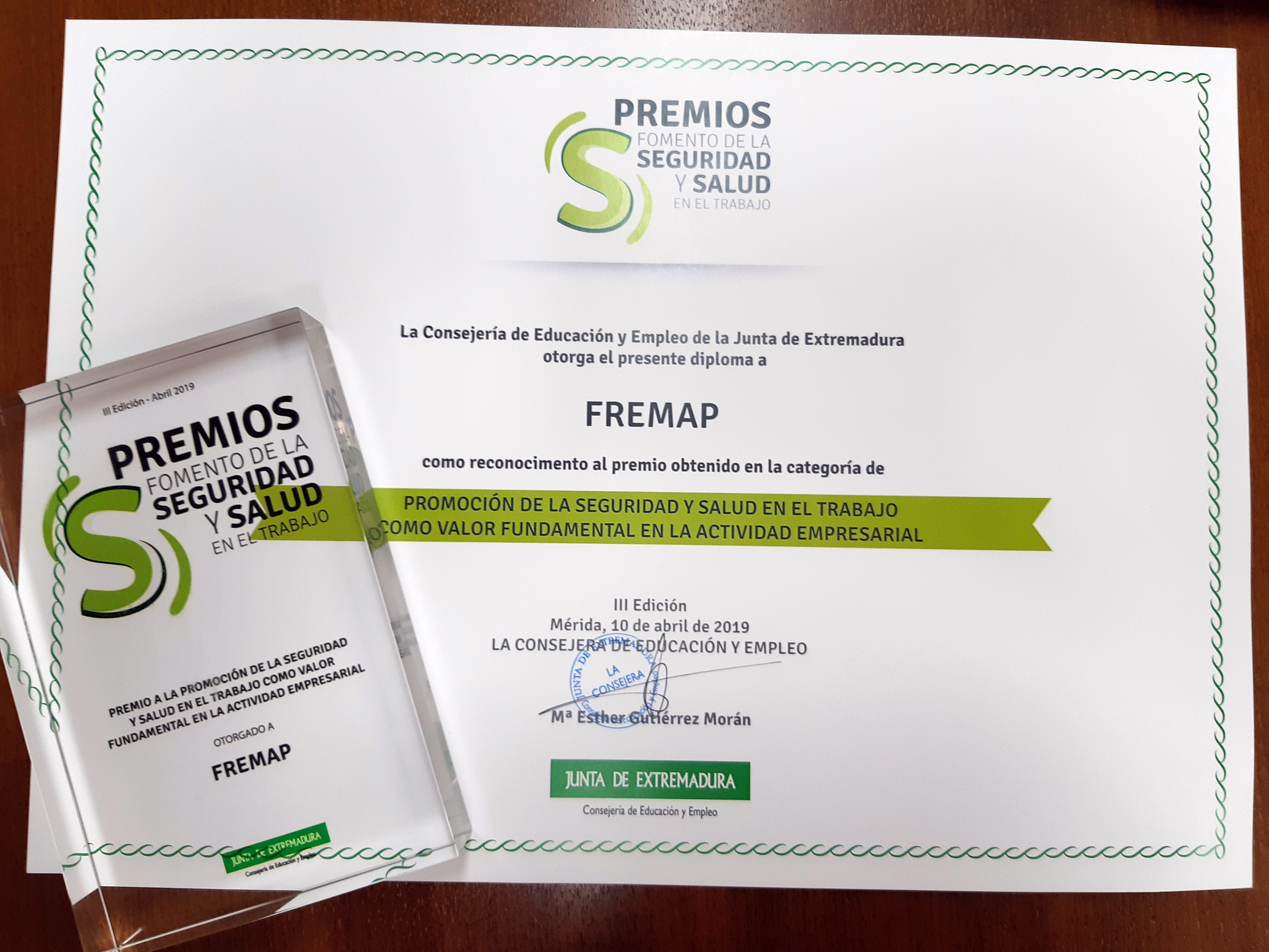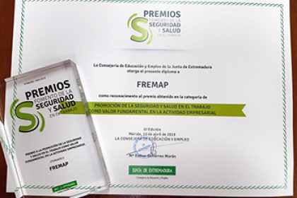 Premio de la Junta de Extremadura a FREMAP en la Categoria -Seguridad y Salud en el Trabajo como valor fundamental en la actividad empresarial-