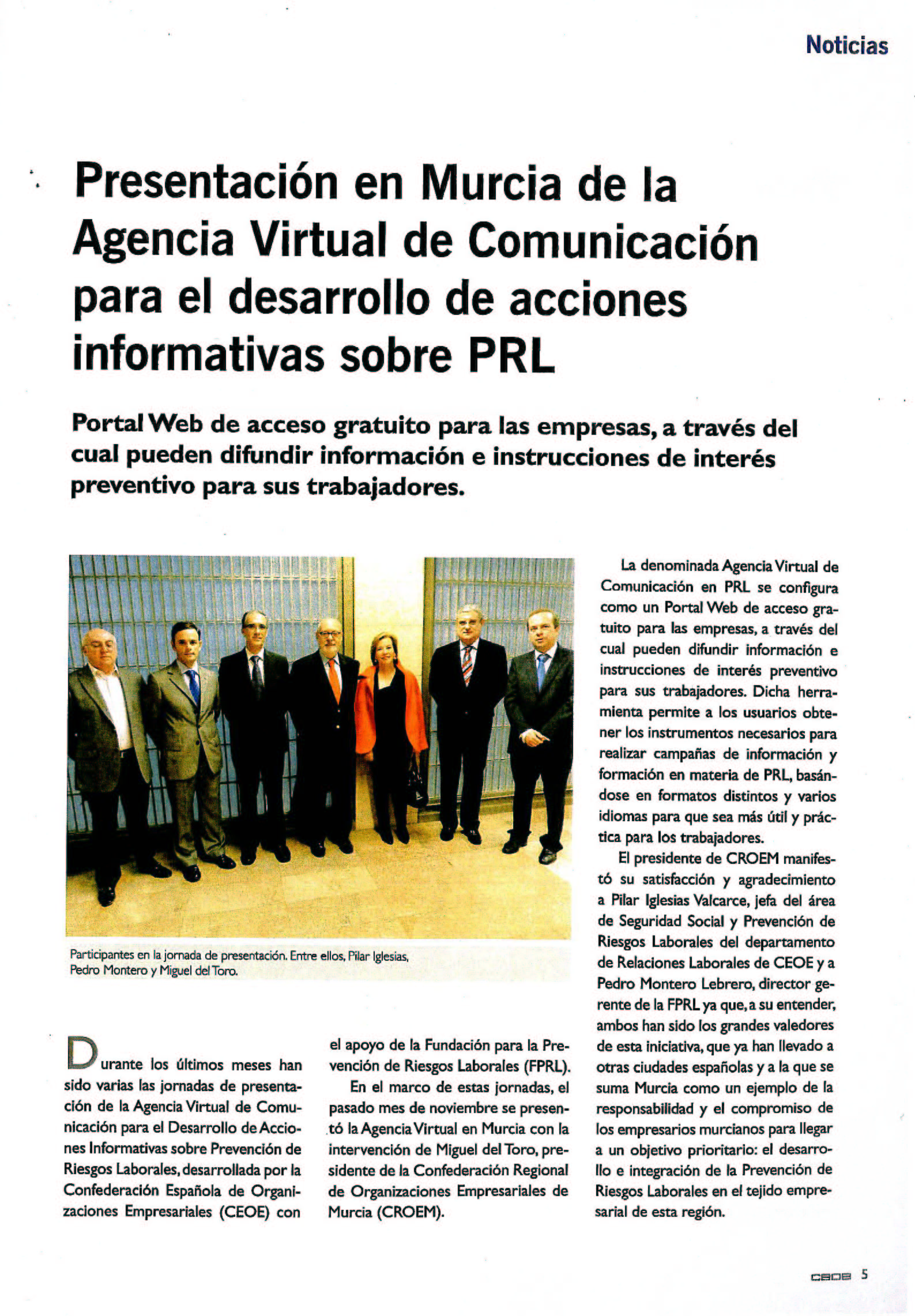 Presentacion en Murcia de la Agencia Virtual de Comunicacion para el desarrollo de acciones informativas sobre PRL.