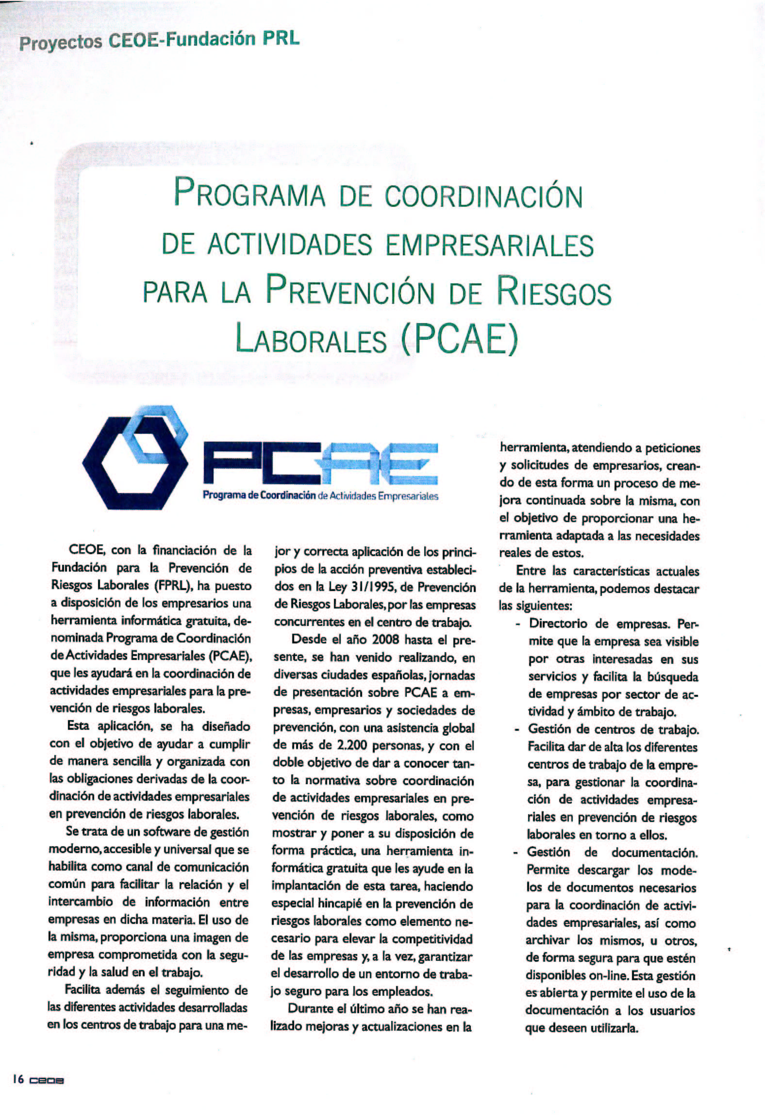 Programa de coordinacion de actividades empresariales para la Prevencion de Riesgos Laborales (PCAE).