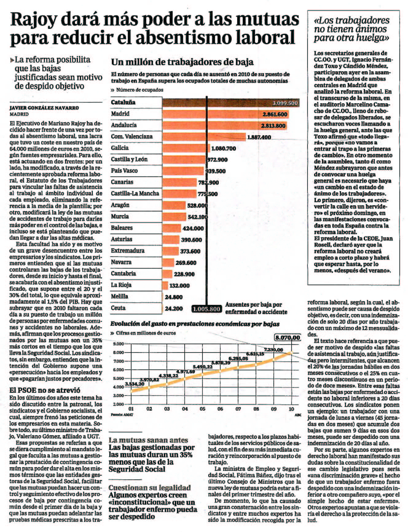 Rajoy dara mas poder a las mutuas para reducir el absentismo laboral.
