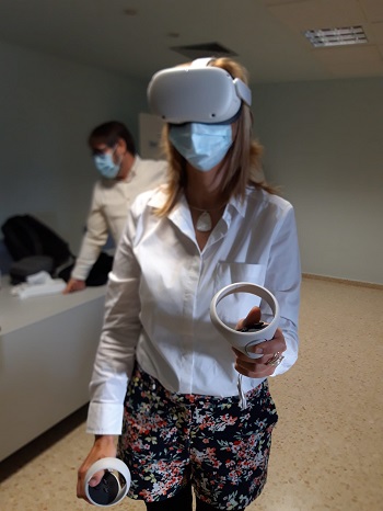 Tambien, la jornada ha incluido la utilizacion y prueba de otras aplicaciones de tecnologia de Realidad Virtual (RV) para la sensibilizacion y aprendizaje en prevencion de riesgos laborales. Estas aplicaciones han permitido diferentes experiencias de inmersion en diversos escenarios interactivos como talleres con maquinaria, oficinas, trabajos de instalaciones, y obras. En todos estos escenarios, los participantes han tenido que tomar decisiones adecuadas en relacion con aspectos preventivos, como la eleccion de los EPI adecuados, la disposicion de elementos de seguridad de maquinas o equipos, o la distribucion correcta de los elementos de trabajo en una oficina, entre otros.