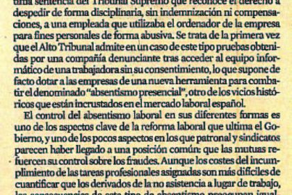 Refuerzo legal a la lucha contra el absentismo.