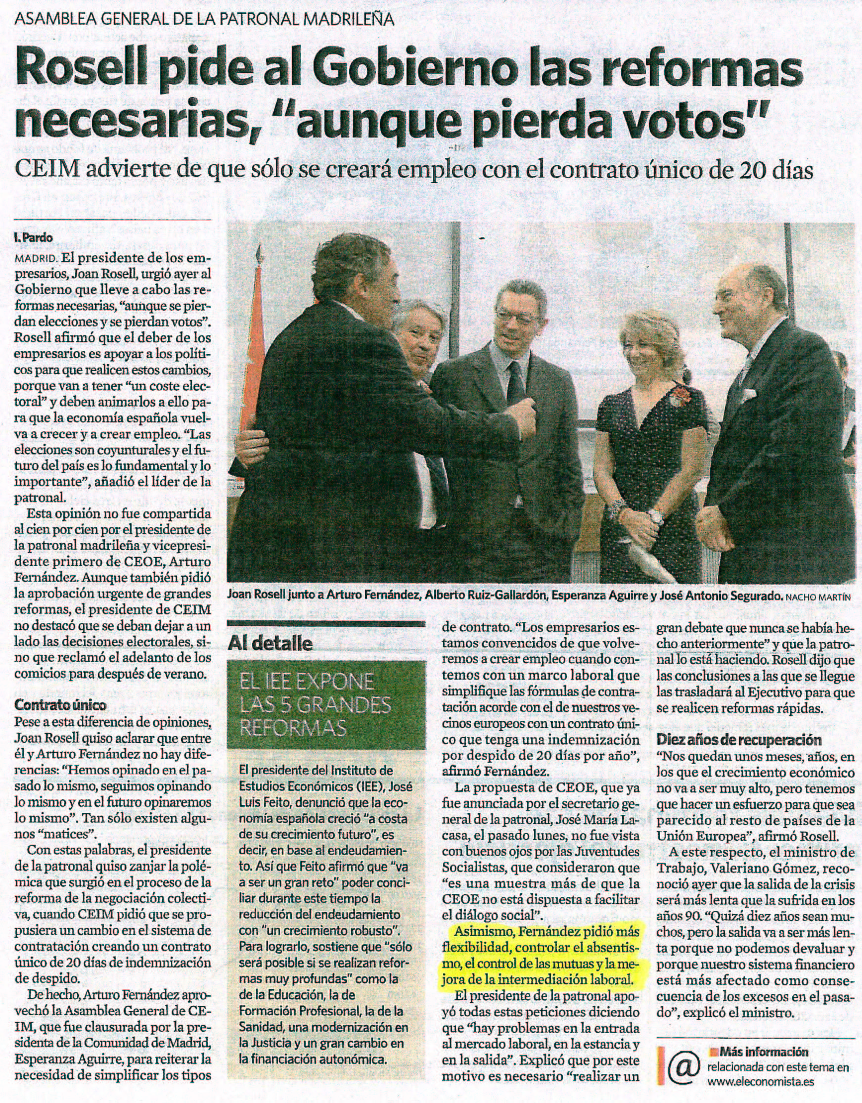 Rosell pide al Gobierno las reformas necesarias, -aunque pierda votos-