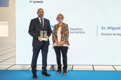 Miguel París, director de Seguridad y Salud de Sacyr, ha recibido el galardón de manos de Elena Juanola, directora de l’Institut Català de Seguretat i Salut Laboral, en el acto de entrega de estos Premios, celebrado en el Museu Marítim de Barcelona.