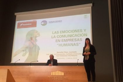 Natalia Fernández Laviada, subdirectora general de Prevención, Calidad y Comunicación de Fraternidad-Muprespa, abrió la jornada con la conferencia "Las emociones y la comunicación en empresas humanas". Fernández Laviada se centró en el equilibrio en la era digital entre ambos conceptos y destacó que "en la era de la inteligencia artificial, el Big Data e Internet de las Cosas, entender las emociones se antoja primordial y la empresa saludable debe ir más allá de una visión simplista, para buscar todas las variables que configuran la salud de la sociedad".