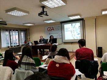 El acto se celebró ante un auditorio formado tanto por alumnos de la escuela de prácticas del Colegio Oficial de Graduados Sociales de Asturias como por estudiantes de Grado de Relaciones Laborales y Recursos Humanos.