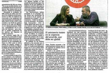 • Sindicatos y patronal acuerdan trasladar tres dias festivos a lunes.
