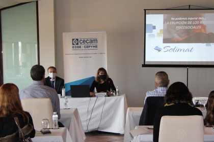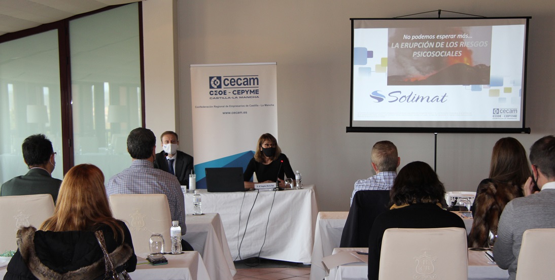 Solimat, Mutua Colaboradora con la Seguridad Social nº72, ha participado en la jornada “La gestión de los riesgos psicosociales en empresas de Castilla-La Mancha” organizada por la Confederación de Empresarios de Castilla-La Mancha (CECAM). Una jornada que ha contado con la asistencia de empresas castellanomanchegas de diferentes sectores, técnicos en PRL y asesorías.