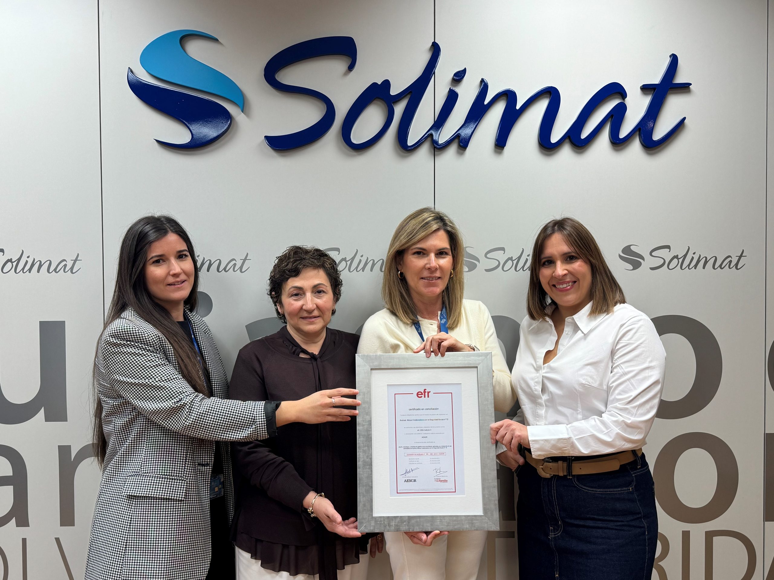 • Solimat renueva la certificación efr, que acredita su compromiso con la conciliación, la transformación social y la sostenibilidad