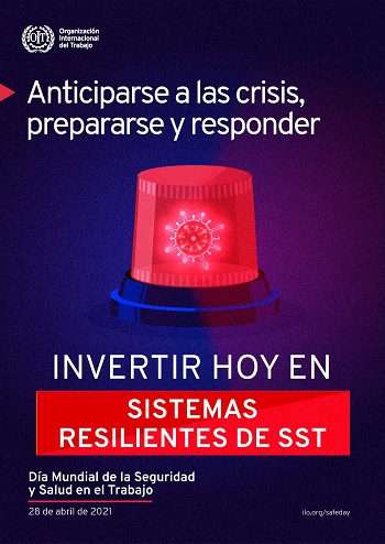El Día Mundial de la Seguridad y Salud en el Trabajo 2021, cuyo lema es “Anticiparse a las crisis, prepararse y responder – Invertir Hoy en Sistemas Resilientes de Seguridad y Salud en el Trabajo”. se centra en potenciar los elementos de un sistema de Seguridad y Salud en el Trabajo (SST), tal y como se establece en el Convenio sobre el marco promocional para la seguridad y salud en el trabajo, 2006 (núm.187). El informe del Día Mundial examina cómo la crisis actual pone de manifiesto la importancia de fortalecer estos sistemas de SST, incluidos los servicios de salud en el trabajo, tanto en los planos nacional como empresarial.