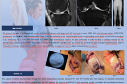 El estudio se centra en el caso de un bailarín profesional veterano de élite de 60 años, que comenzó a experimentar dolor en la rodilla izquierda en junio de 2022. Tras diversas evaluaciones clínicas y pruebas complementarias, se diagnosticó una lesión osteocondral en el cóndilo femoral medial. En octubre de 2022, se realizó una cirugía artroscópica para obtener una muestra de cartílago, seguida de un cultivo de condrocitos. Dos meses después, se llevó a cabo el implante mediante una miniartrotomía medial.