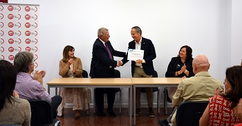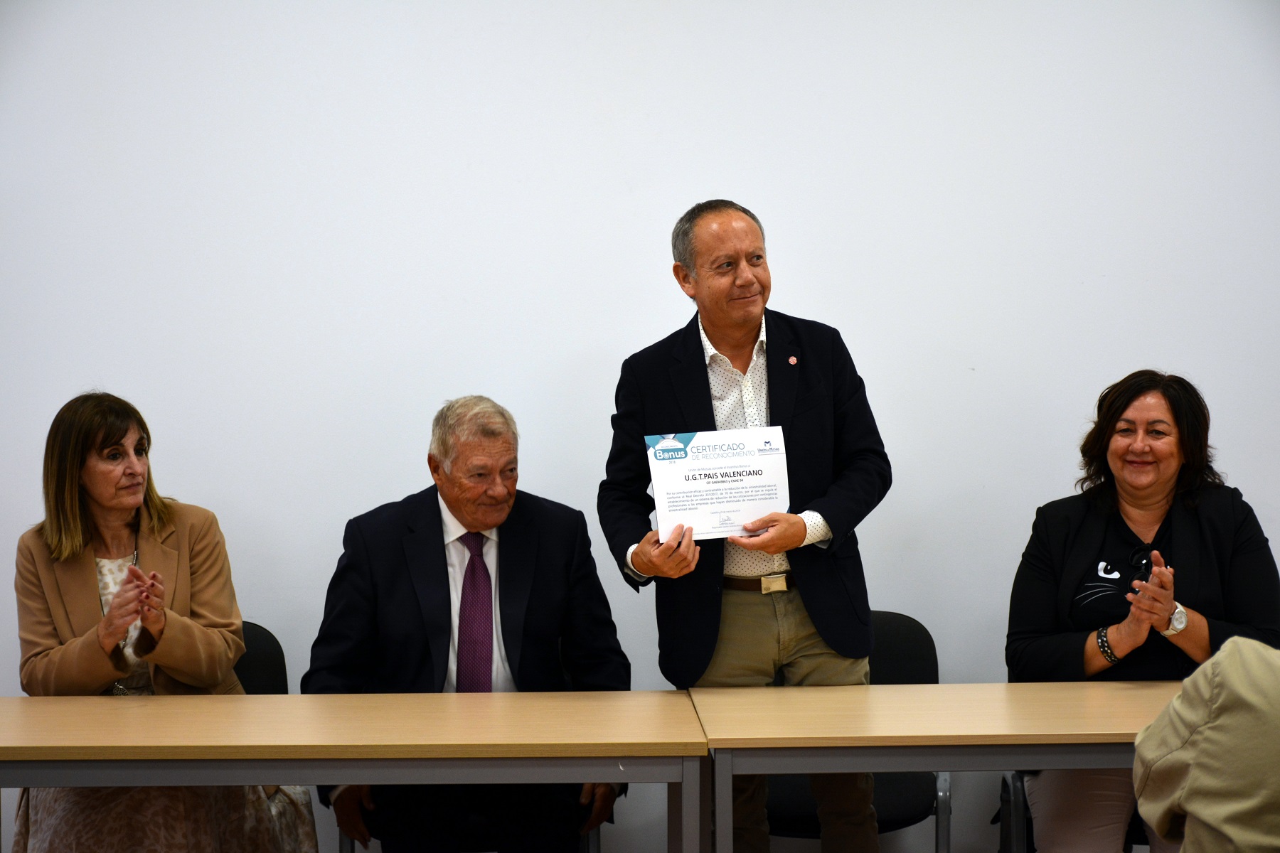 Tambien han estado presentes, la Secretaria de Relaciones Institucionales de UGT-PV, Elvira Rodenas, y la directora territorial de Union de Mutuas, M. Angeles Capilla.