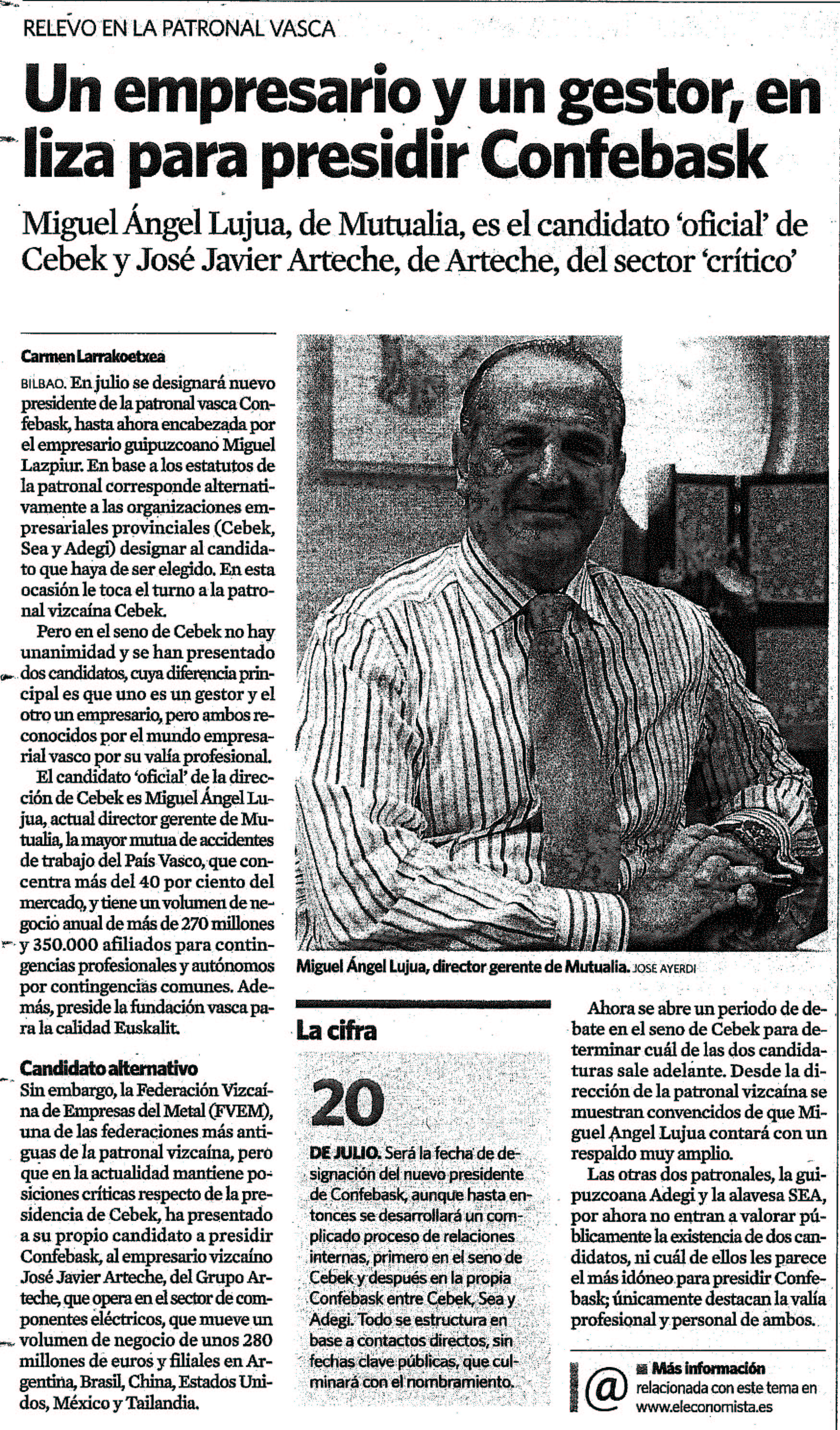 Miguel Angel Lujua, de Mutualia, es el candidato «oficial» de Cebek y Jose Javier Arteche, de Arteche, del sector «critico».