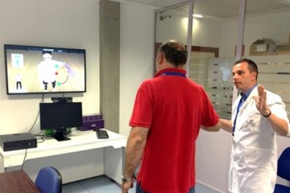 El proyecto ‘Puesto de Rehabilitacion Inteligente’ se materializa en un dispositivo que, sin necesidad de implantes y mejorando las tecnicas y los procesos actuales, facilita la ejecucion de ejercicios de rehabilitacion fisica. Para ello, se utilizan tecnologias de vision por ordenador que ofrecen el grado de precision necesario para la deteccion de movimiento y garantizar la calidad de la interaccion. Con esto se consigue mejorar y abaratar el proceso, permitiendo que la rehabilitacion fisica llegue a mas gente de manera mas eficaz y eficiente