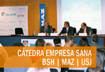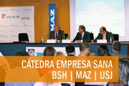 En la jornada Empresa sana, trabajadores sanos, celebrada el pasado viernes 29 de abril en Zaragoza, Mutua MAZ, junto con BSH Electrodomesticos Espana y la Universidad San Jorge de Zaragoza, presento los analisis y conclusiones fruto de la catedra a lo largo de estos ultimos tres anos. La apertura de la jornada fue presentada por Guillermo de Vilchez, director de MAZ, Jose Longas, Director General de BSH Electrodomesticos Espana y Carlos Perez Caseiras, Rector de la USJ.