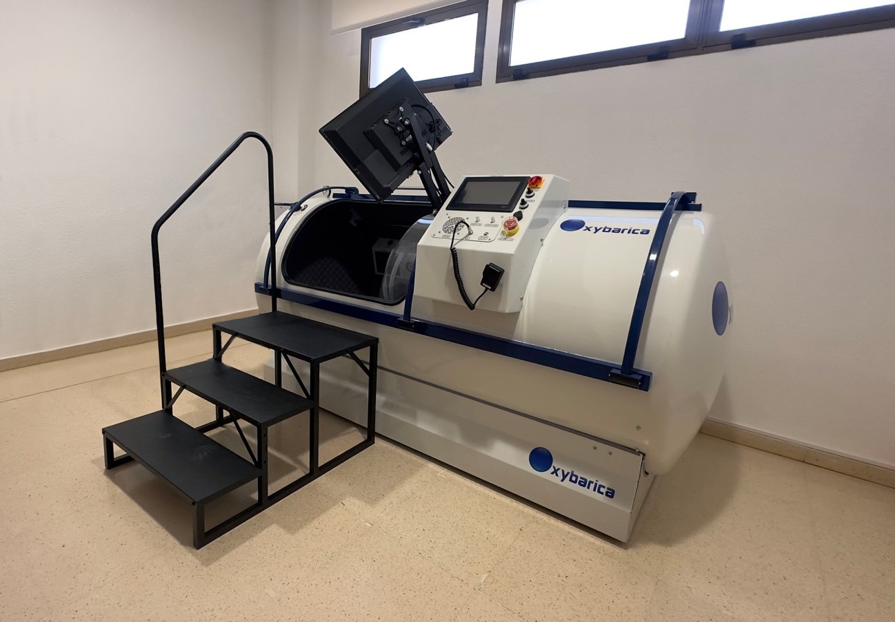 La nueva cámara hiperbárica, que se suma a las ya existentes en la Mutua, ofrece una terapia no invasiva y exenta de efectos secundarios. Mediante la administración de oxígeno a una concentración cercana al 100% bajo una presión controlada de hasta 2 atmósferas, esta tecnología facilita la disolución de oxígeno en el plasma sanguíneo, promoviendo el metabolismo celular y potenciando la regeneración de tejidos, lo que conlleva una amplia gama de beneficios para el cuerpo.