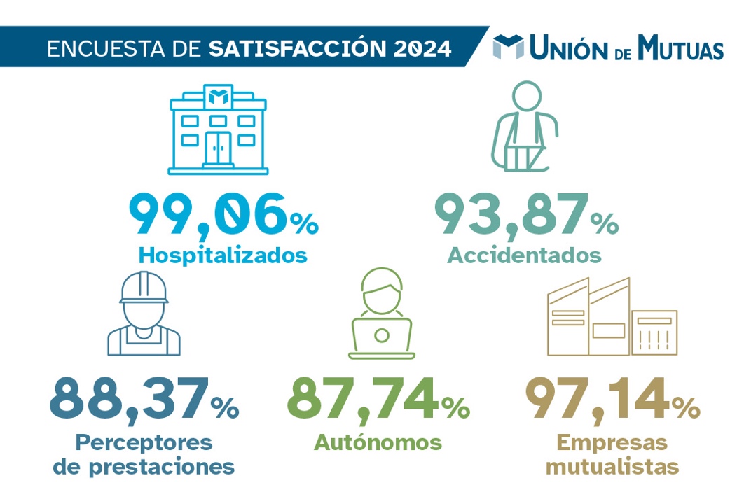 Unión de Mutuas ha obtenido excelentes resultados en las encuestas de satisfacción 2024 que realiza a sus grupos de interés, reafirmando su compromiso con la calidad asistencial y la atención a empresas y trabajadores protegidos.