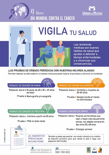 Unión de Mutuas se suma al Día Mundial contra el Cáncer que promueve la Organización Mundial de la Salud con el objetivo de aumentar la concienciación y movilizar a la sociedad para avanzar en la prevención y control de esta enfermedad.