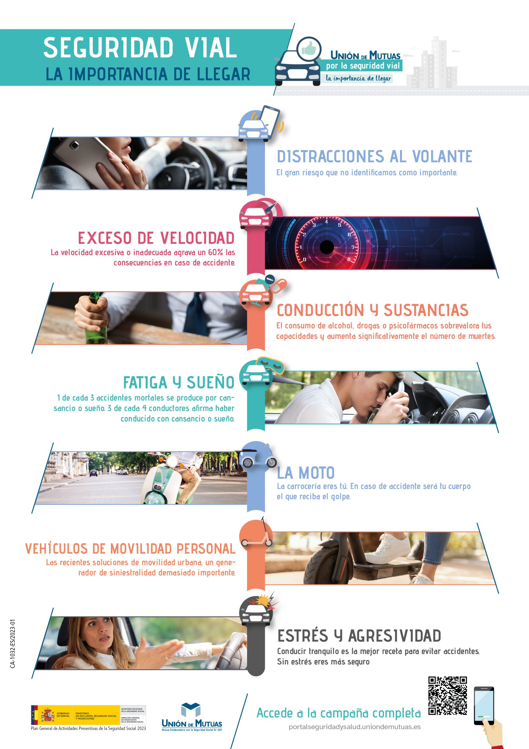 Como acción de cierre de campaña, se ha desarrollado un cartel-resumen con todas las medidas y recomendaciones que Unión de Mutuas pone a disposición de sus empresas adheridas, para que puedan difundirlo entre sus trabajadores y seguir generando una cultura preventiva y de concienciación en la carretera.